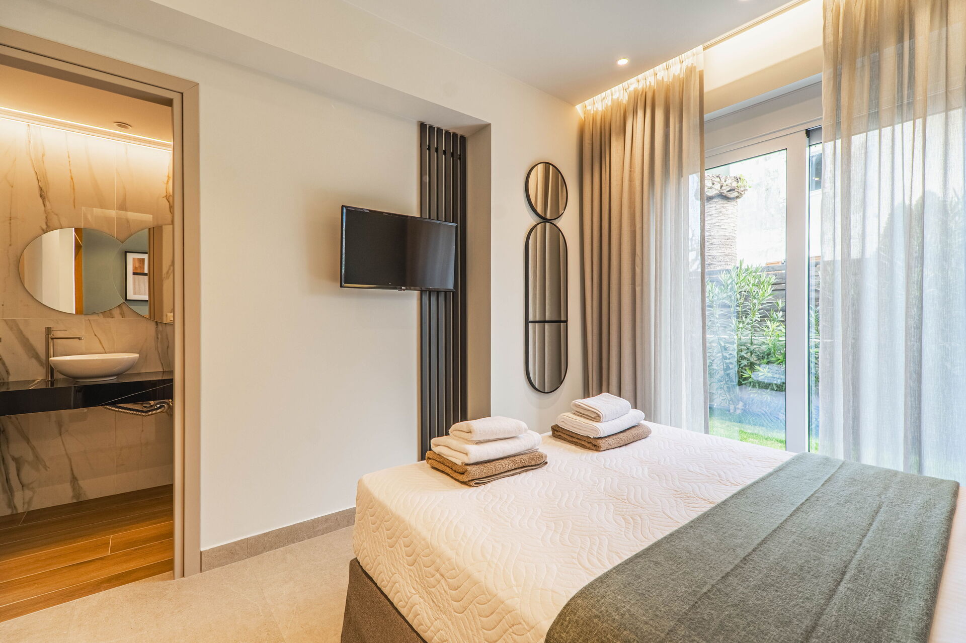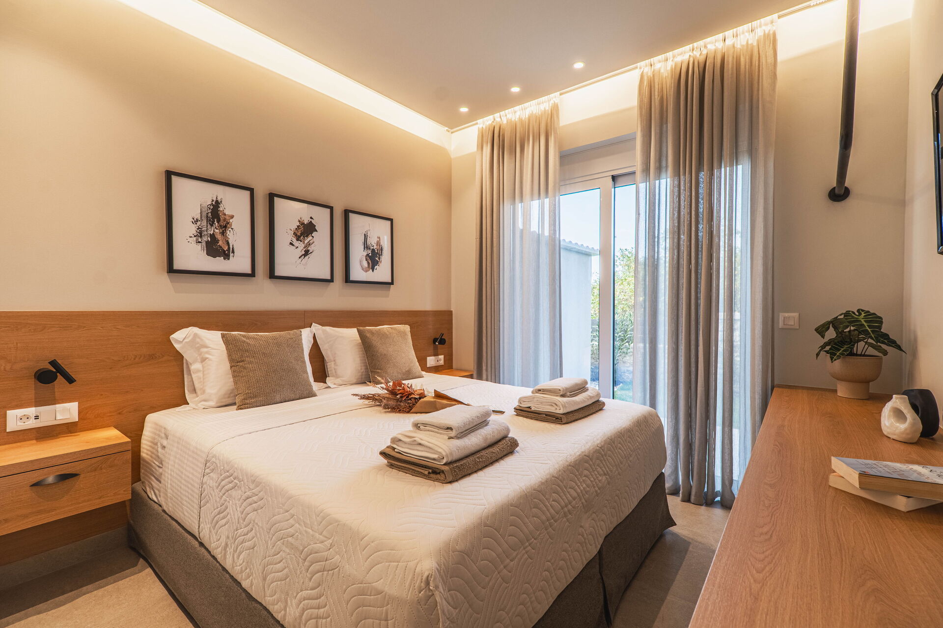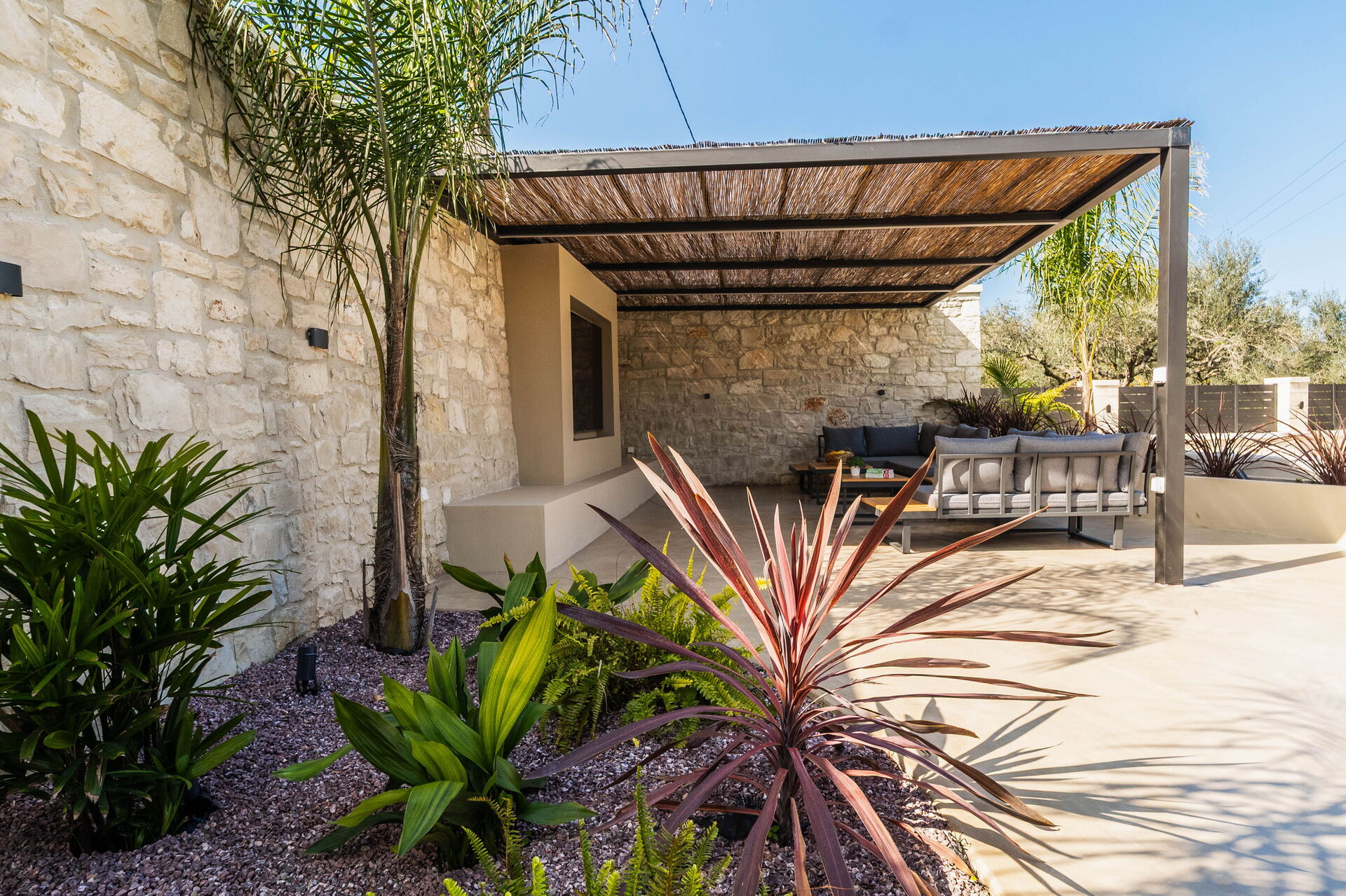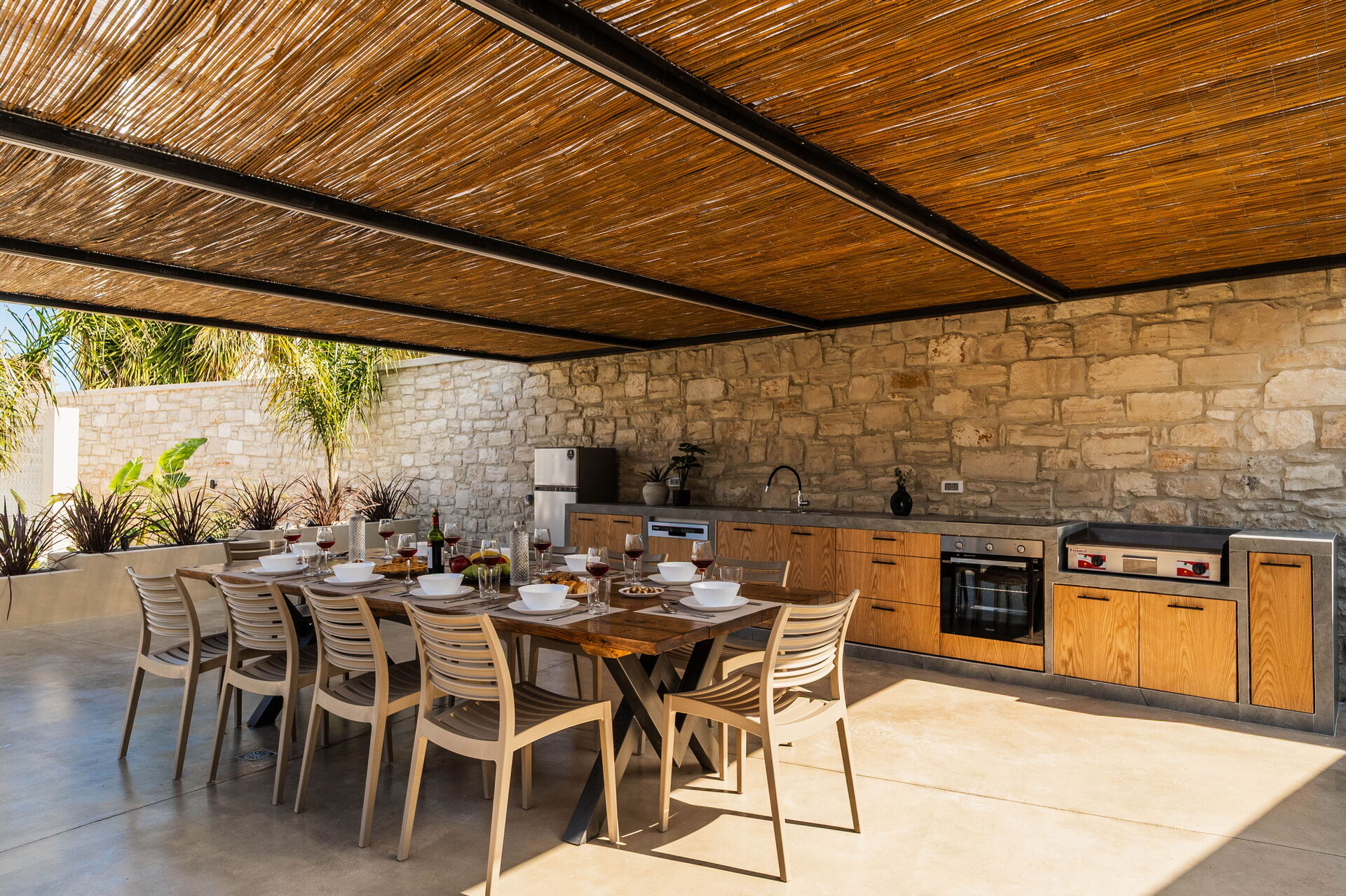 All'esterno ci sono una bella zona attrezzata per poter mangiare all'aperto, una vasca idromassaggio con cascata e una bellissima piscina privata in cui rilassarsi e divertirsi insieme ad amici e familiari nelle calde giornate cretesi.