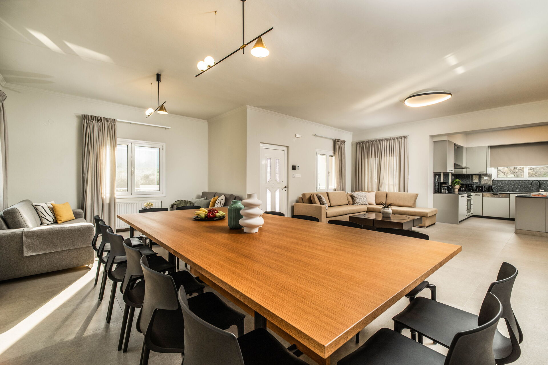 Our group of 12 had an amazing stay at Villa Serenity. The outdoor area with kitchen and pool was absolutely fantastic – perfect for our vacation. Roula was an exceptional host throughout our stay - very friendly, flexible, and helpful with everything we needed. The location is a bit outside the city center, so having a rental car was useful. However, there are nice restaurants nearby, which gave us great options for both dining out and cooking at the villa. Would definitely recommend this place for anyone looking for a spacious, well-equipped villa with a friendly and helpful host!